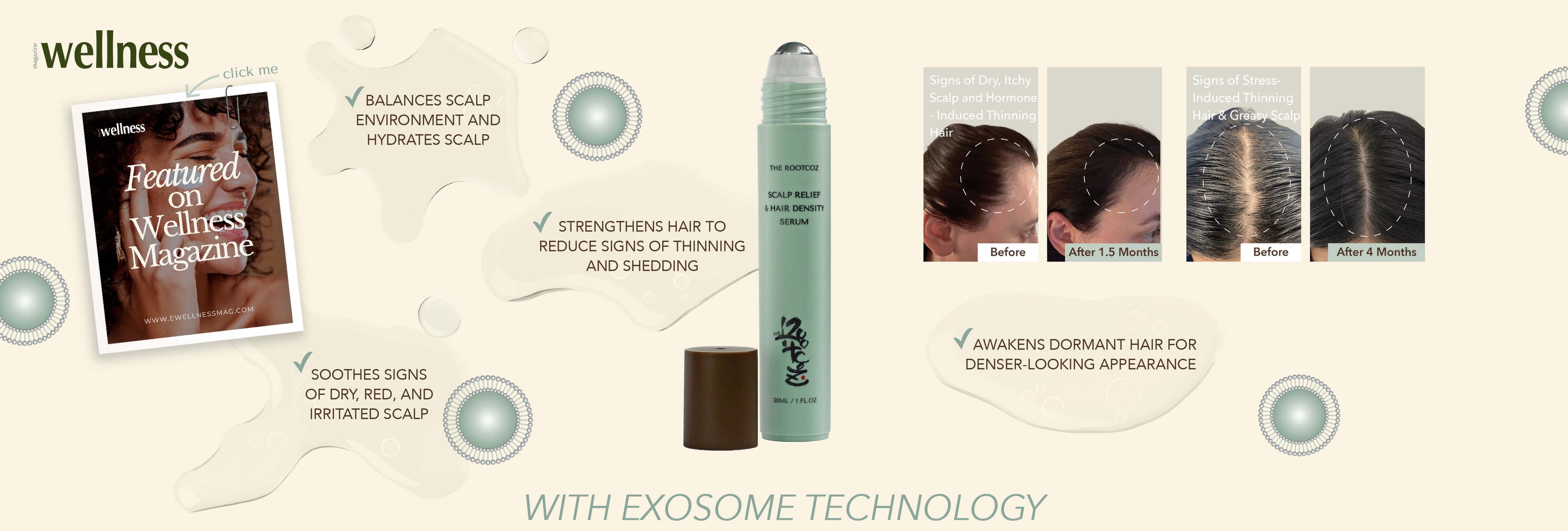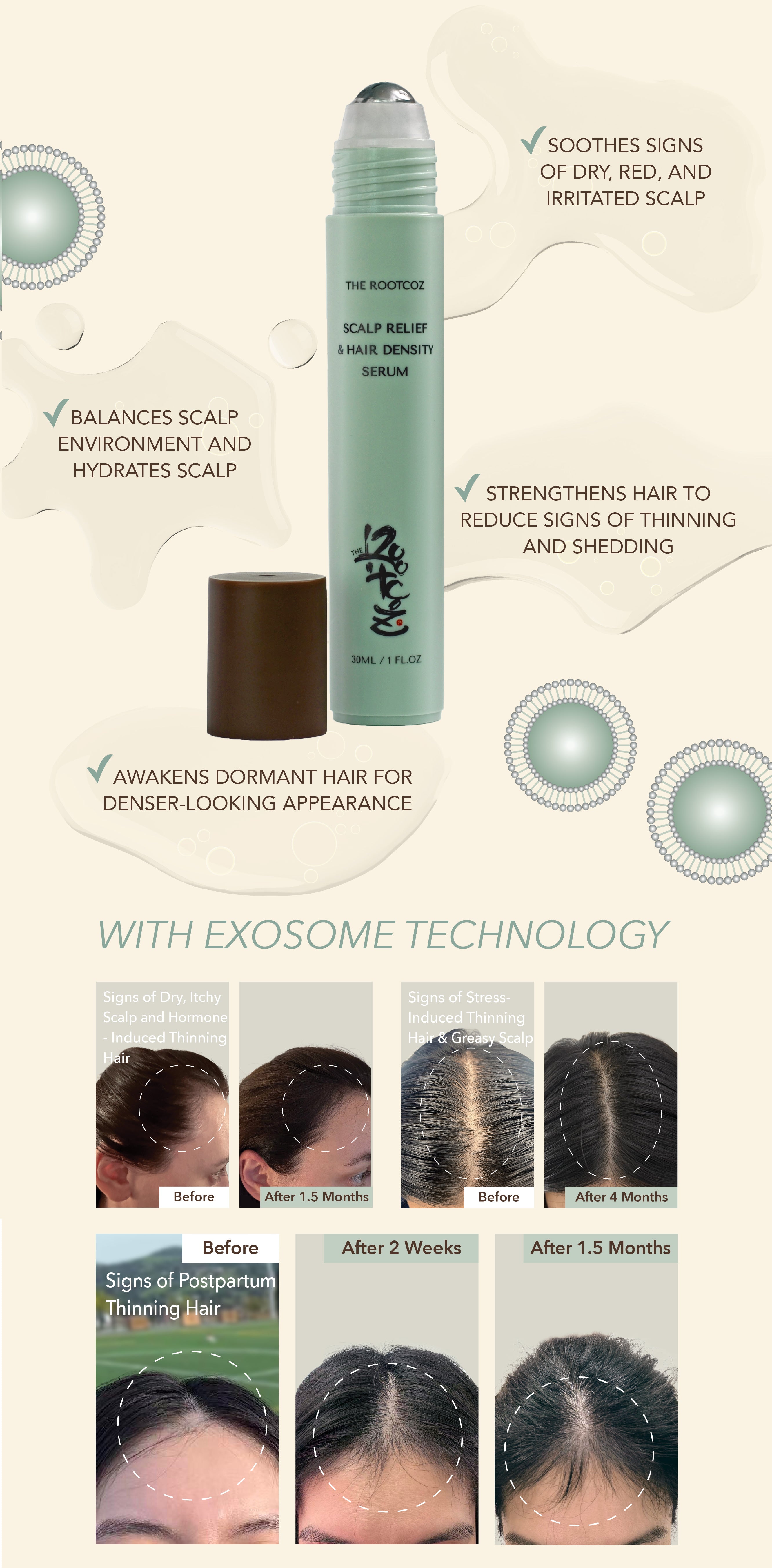 Fast-absorbing, non-greasy, leave-on 2-in-1 scalp and hair serum for stressed scalp and thinning hair signs. Powered by cutting-edge exosome technology, clinical-strength ingredients, peptide, and Asian extracts.